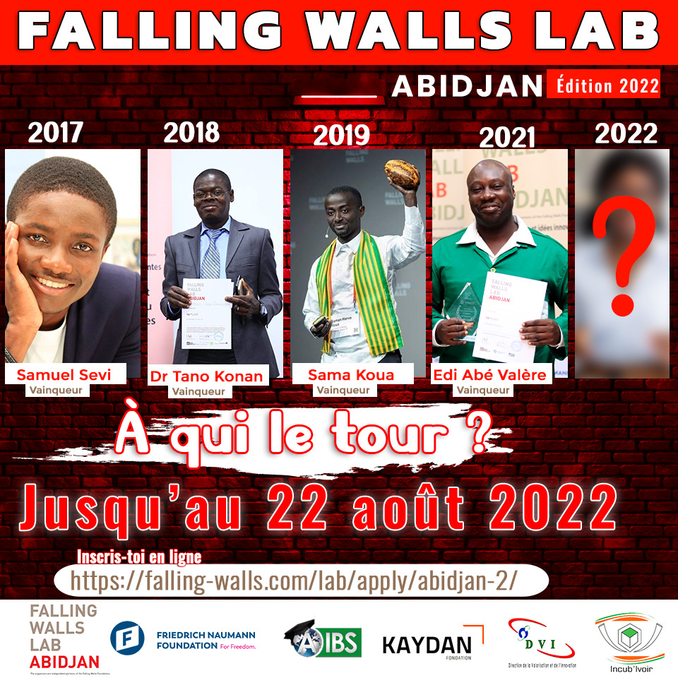 La Fondation Friedrich Naumann pour la Liberté (Bureau Côte d‘Ivoire) vous invite à vous inscrire gratuitement pour participer au concours international d’innovation dénommé Falling Walls Lab organisé par la Fondation Friedrich Naumann en cliquant sur ce lien https://falling-walls.com/lab/apply/abidjan-2/apply/