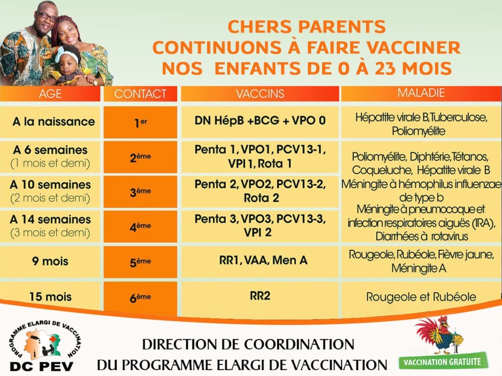 -Depuis la naissance, différents vaccins sont administrés aux enfants et sont gratuits. (Voir affiche)