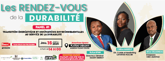 Rejoignez-nous ce Jeudi 16 Janvier 2025 dès 14h00 à l’American Space, d’Abidjan Plateau pour parler de »Transition énergétique et innovations environnementales au service de la durabilité ».